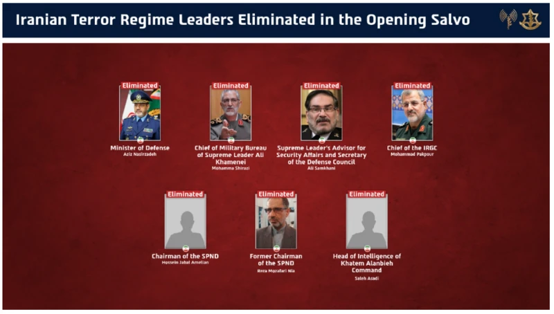 İsrail Savunma Kuvvetleri (IDF), “İran rejiminin savunma kademesini ilk saldırı dalgasında” etkisiz hale getirdiğini” açıkladı. İsrail’in öldürdüğünü iddia ettiği 7 kişi arasında Hamaney’in danışmanı Ali Şemhani, İran Devrim Muhafızları Komutanı Muhammed Pakpur ve Savunma Bakanı Aziz Nasirzade de var.