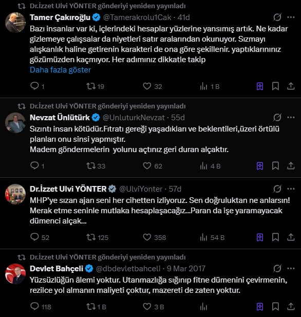 Bu paylaşımın ardından Yönter’in bazı MHP’li isimlerin paylaşımlarını kendi hesabından yeniden paylaşması dikkat çekti. MHP’li pek çok isim de eşzamanlı olarak sosyal medyadan benzer içerikli paylaşımlar yaptı.