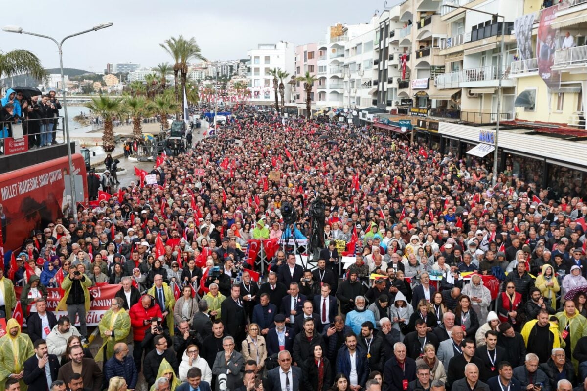 CHP’nin 101’inci “Millet İradesine Sahip Çıkıyor” mitingi, bugün Aydın’ın Kuşadası ilçesinde İsmail Cem Meydanı’nda düzenlendi. Kuşadası Belediye Başkanı Ömer Günel’in 13 Mart’ta gözaltına alınıp 17 Mart’ta tutuklanarak Silivri Cezaevi’ne gönderilmesinin ardından CHP Genel Başkanı Özgür Özel, Kuşadası’na gelerek vatandaşlara hitap etti. Özel, şunları kaydetti: