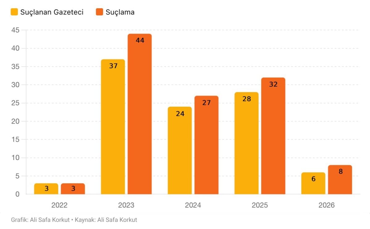 8 Nisan itibarıyla ise 2026’da sekiz gazeteciye “halkı yanıltıcı bilgiyi alenen yayma” suçlaması yöneltildi.