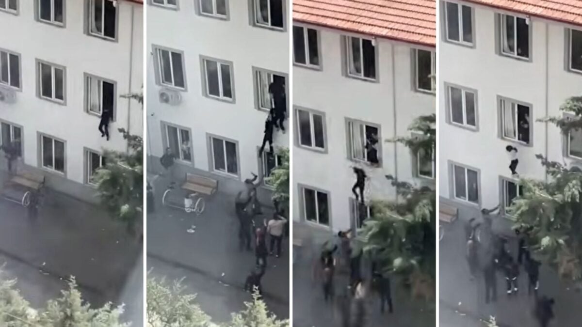 Bazı öğrencilerin de korkuyla sınıf camlarından atladığı görüntüler dikkat çekti.