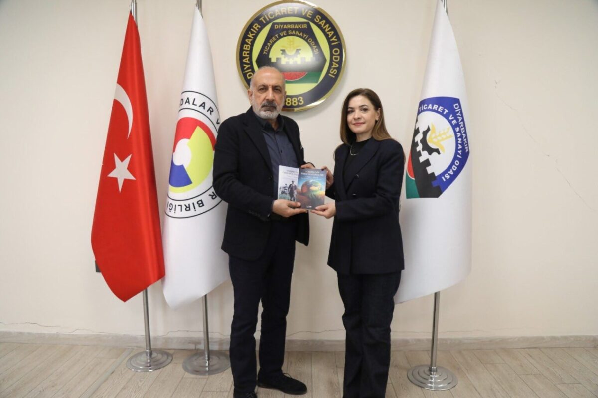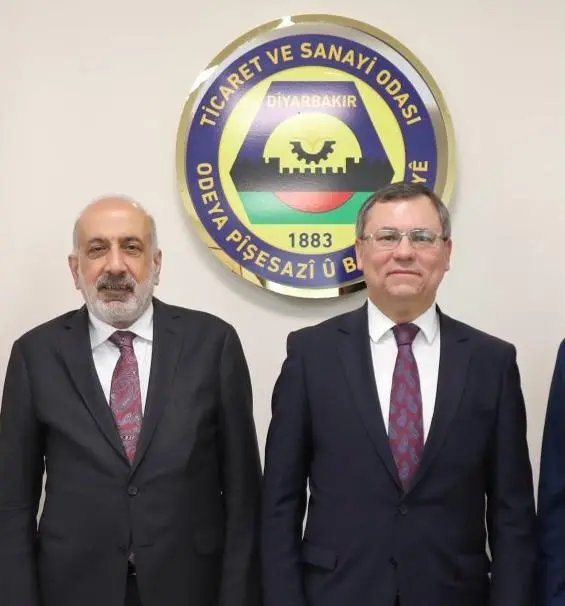 Diyarbakır’daki Tarım Fuarı’na katılan Rusya Federasyonu Türkiye Ticaret Temsilcisi Aidar Gaşigullin, DTSO Başkanı Mehmet Kaya’yı ziyaret etti. Ziyaretten sonra çekilen fotoğrafta bir ayrıntı gözlerden kaçmadı. Odada bulunan logoda Türkçe ismin yanı sıra Kürtçe de yer aldı.