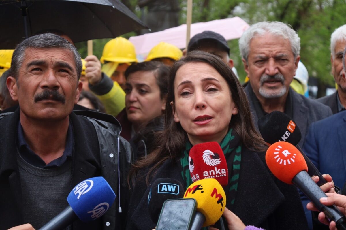 DEM Parti Eş Genel Başkanı Tülay Hatimoğulları, Kurtuluş Parkı’nda haklarını talep ederek açlık grevlerini sürdüren maden işçilerini ziyaret ederek açıklamalarda bulundu.