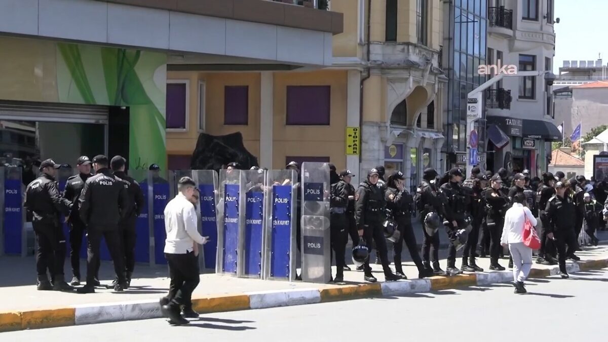 İSTANBUL (Medyascope, ANKA) – 1 Mayıs 1977’de Taksim Meydanı’nda yaşamlarını yitirenleri anmak ve açıklama yapmak için Kazancı Yokuşu’na gelen demokratik kitle örgütü temsilcilerine polis izin vermedi. Anma yapmak isteyenlerin çevresi polis tarafından kuşatıldı. Bunun üstüne demokratik kitle örgütü temsilcileri oturma eylemi başlattı. Polisin oturma eylemi yapan 30’u aşkın kişiyi gözaltına aldığı ifade ediliyor.