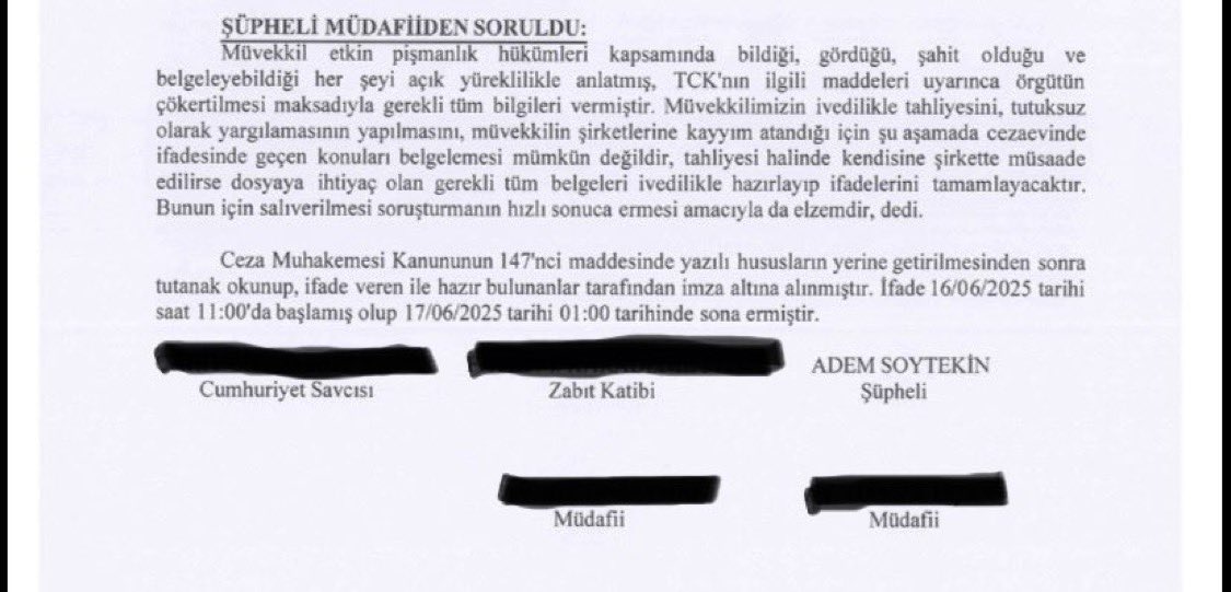 - Adem Soytekin’in etkin pişmanlık ifadesinin imzasız ve barkodsuz olduğu ortaya çıktı.