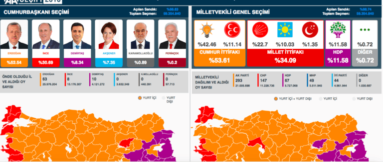 Görevdeki Cumhurbaşkanı Recep Tayyip Erdoğan cumhurbaşkanlığına bir kez daha aday oldu. Selahattin Demirtaş ikinci defa aday olur iken Muharrem İnce, Meral Akşener, Temel Karamollaoğlu ve Doğu Perinçek de seçimde cumhurbaşkanı adayı olduklarını duyurdular. Seçimi ilk turda oyların salt çoğunluğunu alan Erdoğan kazandı.