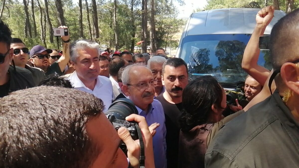 Cumhuriyet Halk Partisi (CHP) Genel Başkanı Kemal Kılıçdaroğlu ve beraberindeki heyet, Akbelen Ormanı’nda kömür madeni açılacak sahadaki ağaç kesimini engellemek üzere nöbet tutan köylüler ve çevre aktivistlerini ziyaret etti. Çevreciler, yaptığı konuşmanın ardından alandan ayrılacağı sırada Kılıçdaroğlu’nun bindiği aracın önünü keserek, “Arabaya değil, barikata” diye slogan attı. Kılıçdaroğlu çağrıların ardından araçtan inerek ağaçların kesildiği alana […]