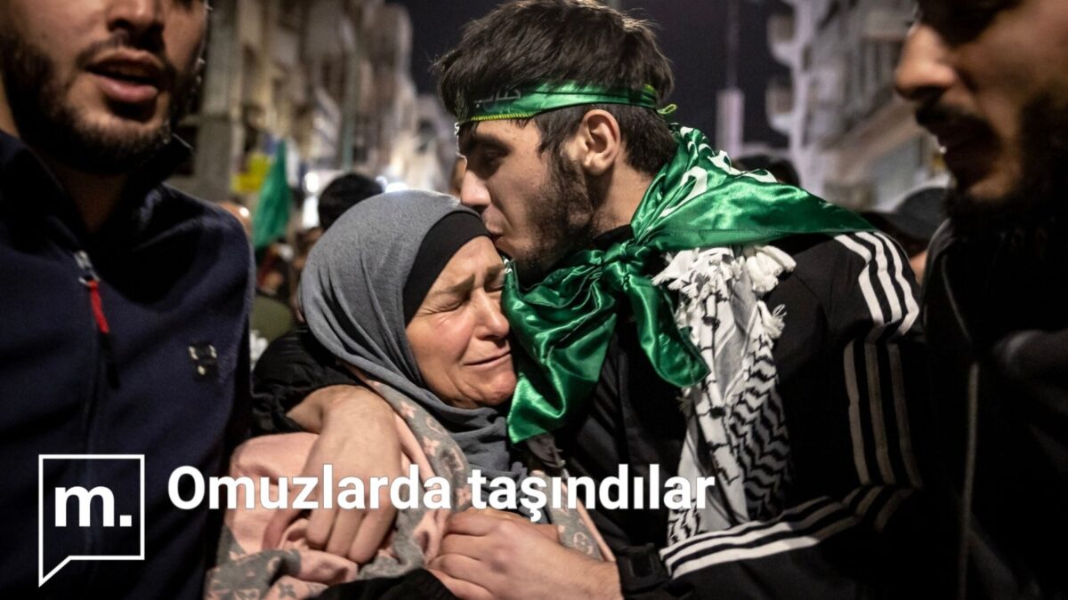 İzleyin – İsrail’in serbest bıraktığı Filistinli mahkumlar omuzlarda taşındı